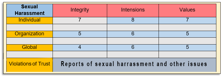 The Ethical Trust Survey and Grid provide data and a way to measure levels of Trust. Now we can apply actions from the Ethical Strategies Toolbox to manage and improve levels of Trust and resolve many charged issues, such a sexual harassment.