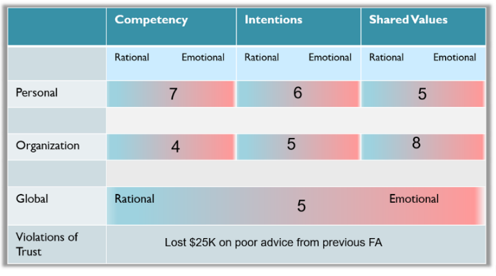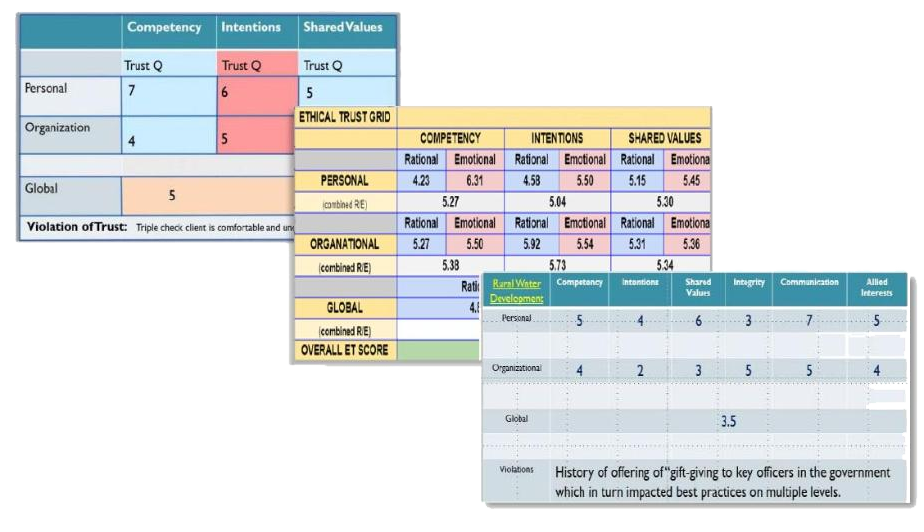 - Components: Competency, Shared Values, Integrity, Intentions, Allied Interests, Communications