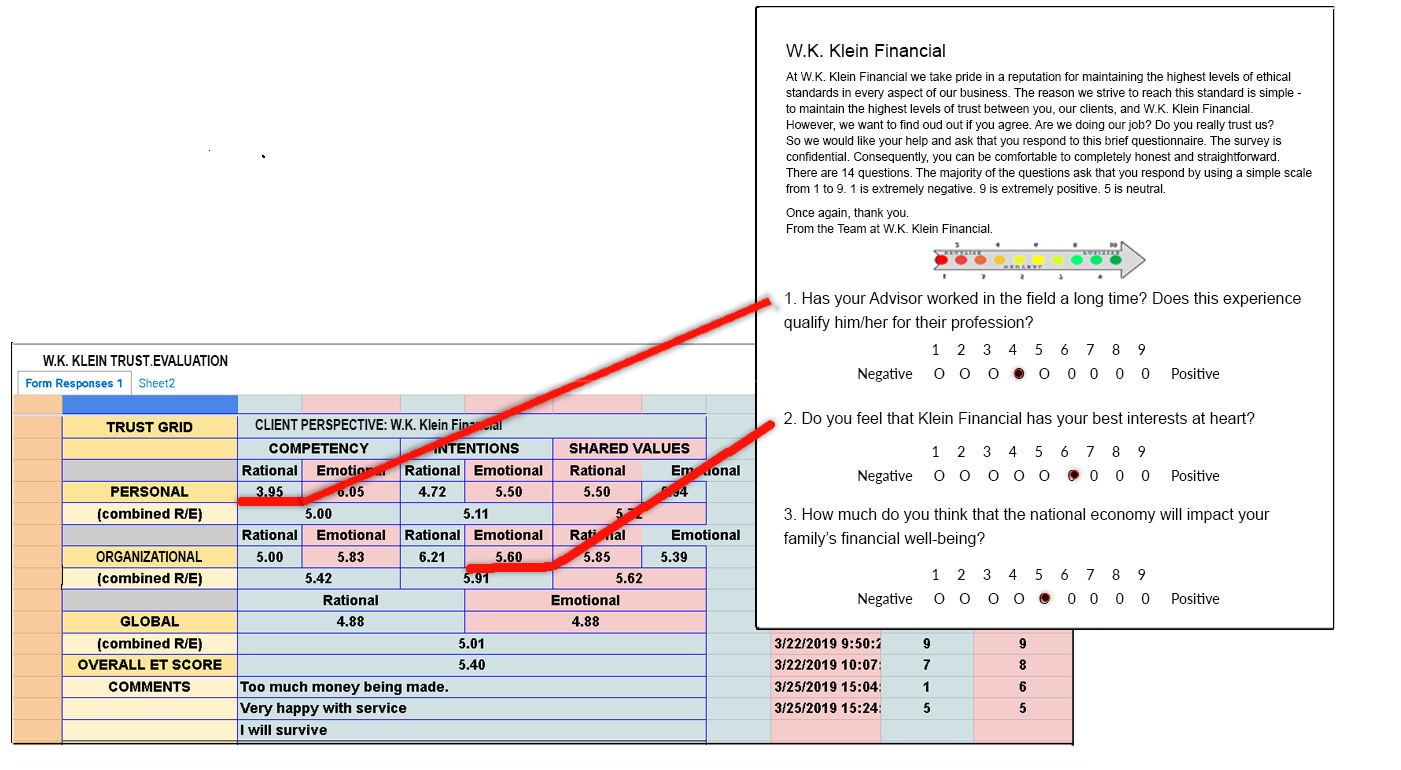 Each question/answer in the survey is tied to its appropriate cell in the Trust Grid.
